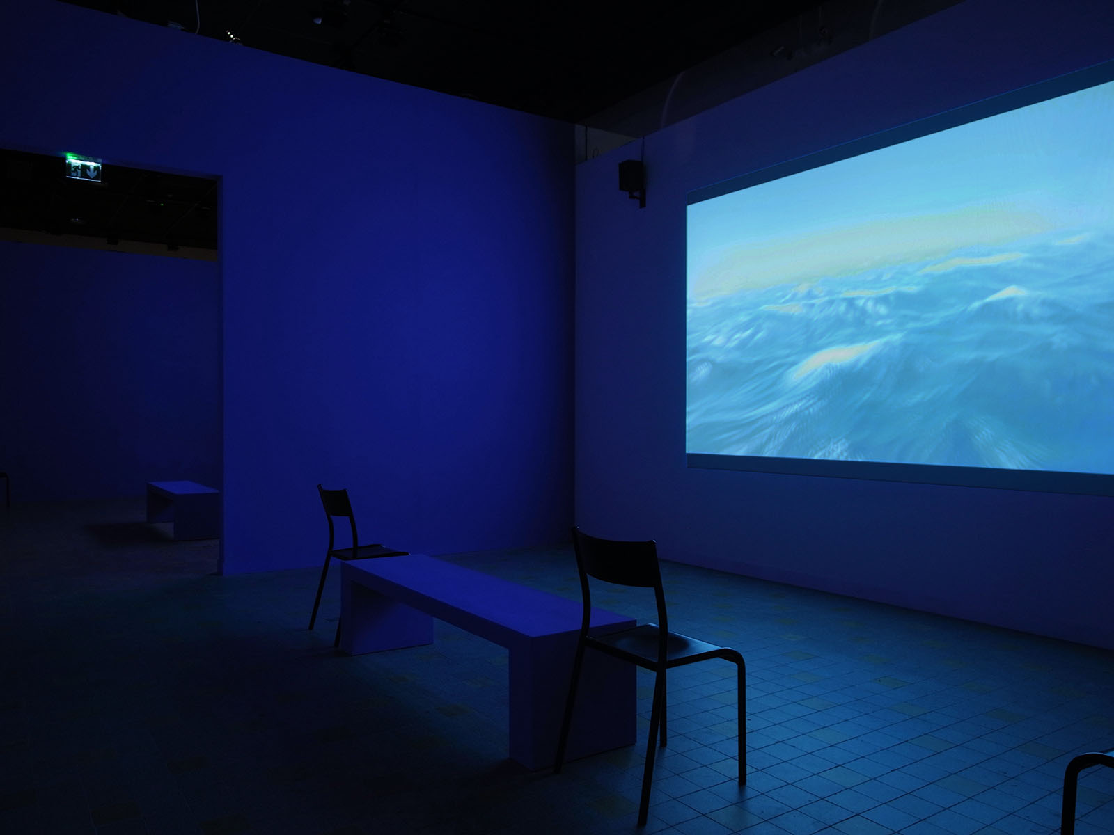 Les deux films vidéos disposent de deux salles symétriques avec des bancs et des chaises.