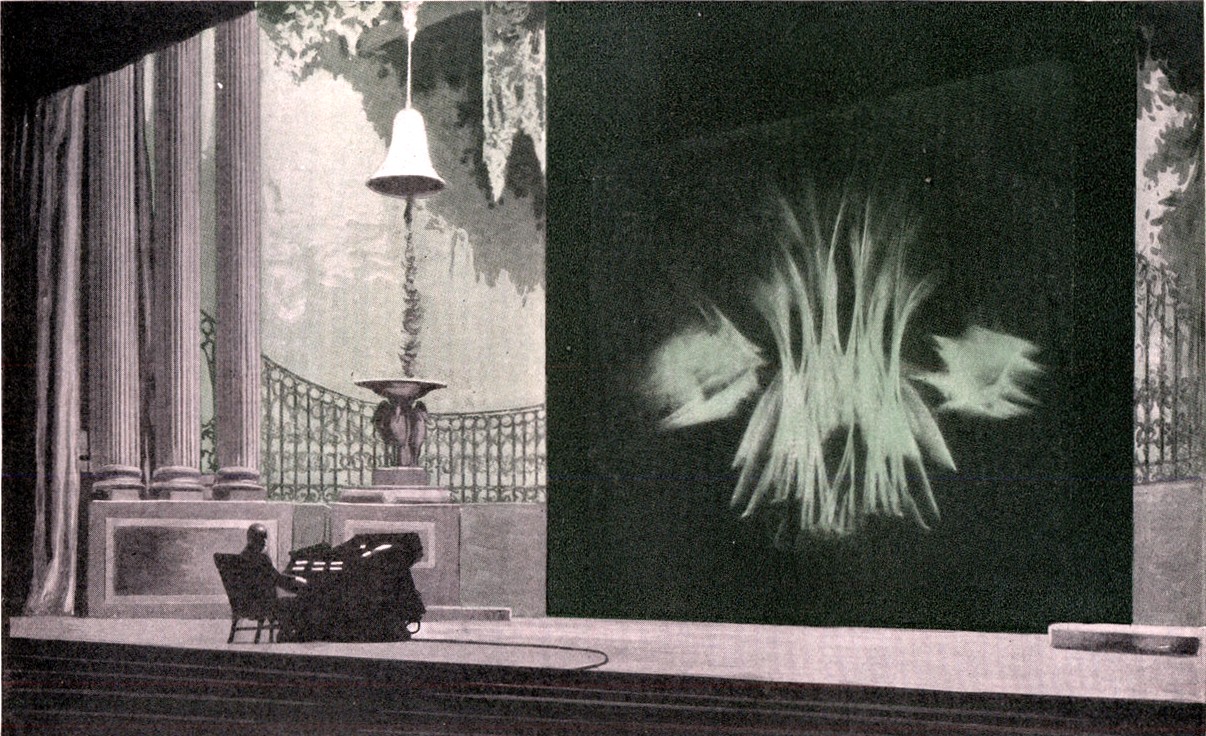 Dans les quarante années qui ont précédé 1920, année où pour la première fois, on a pu parler d’une tentative de synthèse et de mise en place de ce médium comme  une forme générale et valable d’expression, des représentations théâtrales avaient déjà utilisé la lumière électrique. La lumière «environnementale» devait être enrichie d’une nouvelle qualité dynamique et symbolique à la suite des innovations dans l’utilisation de la lumière dirigée. Les pionniers dans ce domaine sont Adolphe Appia et Edward Gordon Craig. Le premier a créé, par l’éclairage de scène, un nouvel «espace rythmique», le deuxième a révélé avec ce médium le pur mouvement des choses «en silence». Il convient de souligner que Craig avait déjà pensé à créer un art nouveau par l’utilisation de la lumière et du mouvement.