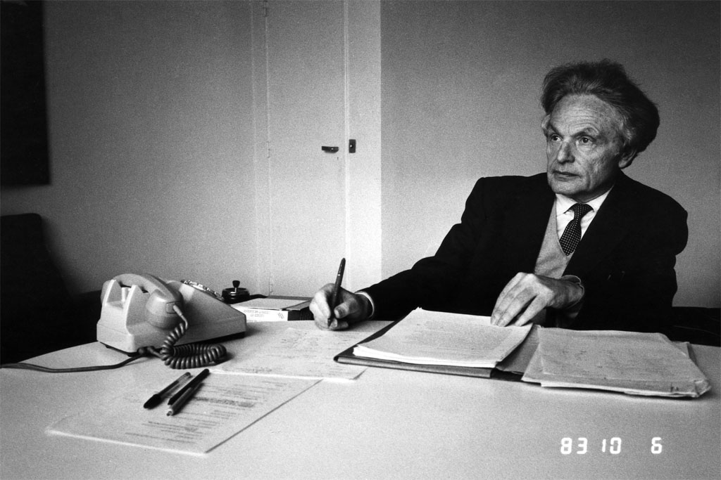 Frank Popper au Musée d’art moderne de la Ville de Paris lors de la préparation de l’exposition Electra, 1983. Photo Jean-Louis Boissier